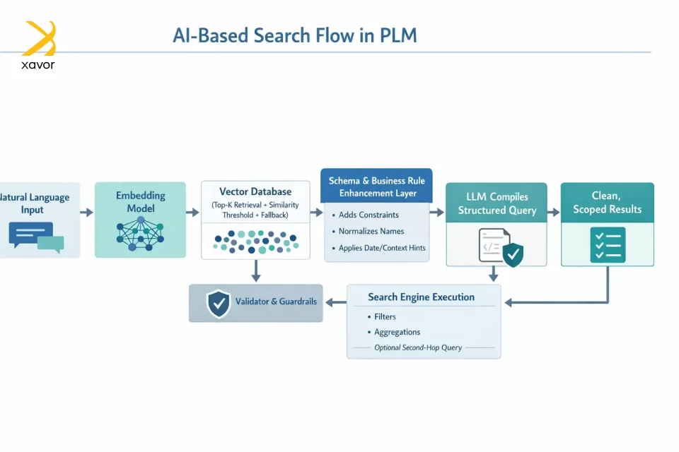 AI can make PLM search feel less like keyword hunting and more like asking for what you mean. Instead of only matching the exact words you type, an AI model can try to understand your intent. What you’re actually looking for and it can also make sense of different kinds of content that get indexed.