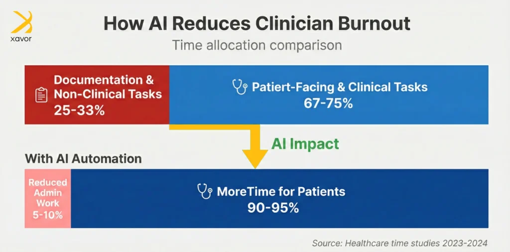 Burnout contributes to medical errors, staff shortages, and rising costs. AI helps reduce this cognitive overload, which directly improves care quality.