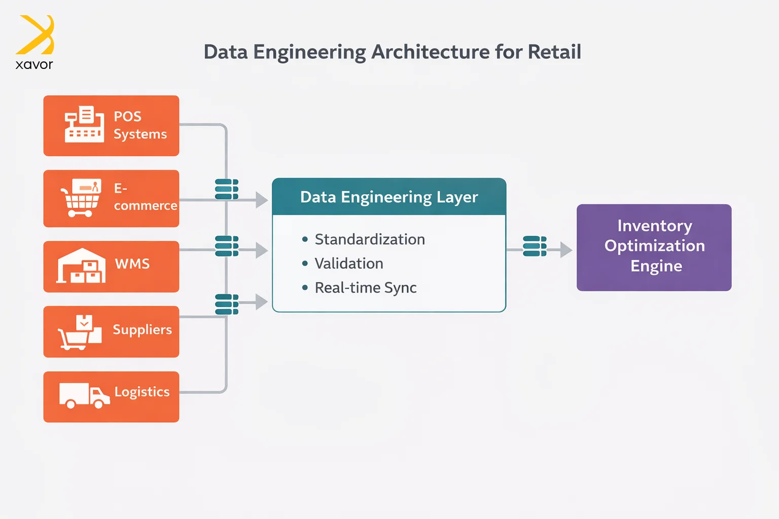 Data engineering provides the foundation for effective inventory optimization. It ensures that data from different systems can be trusted, combined, and analyzed at scale.