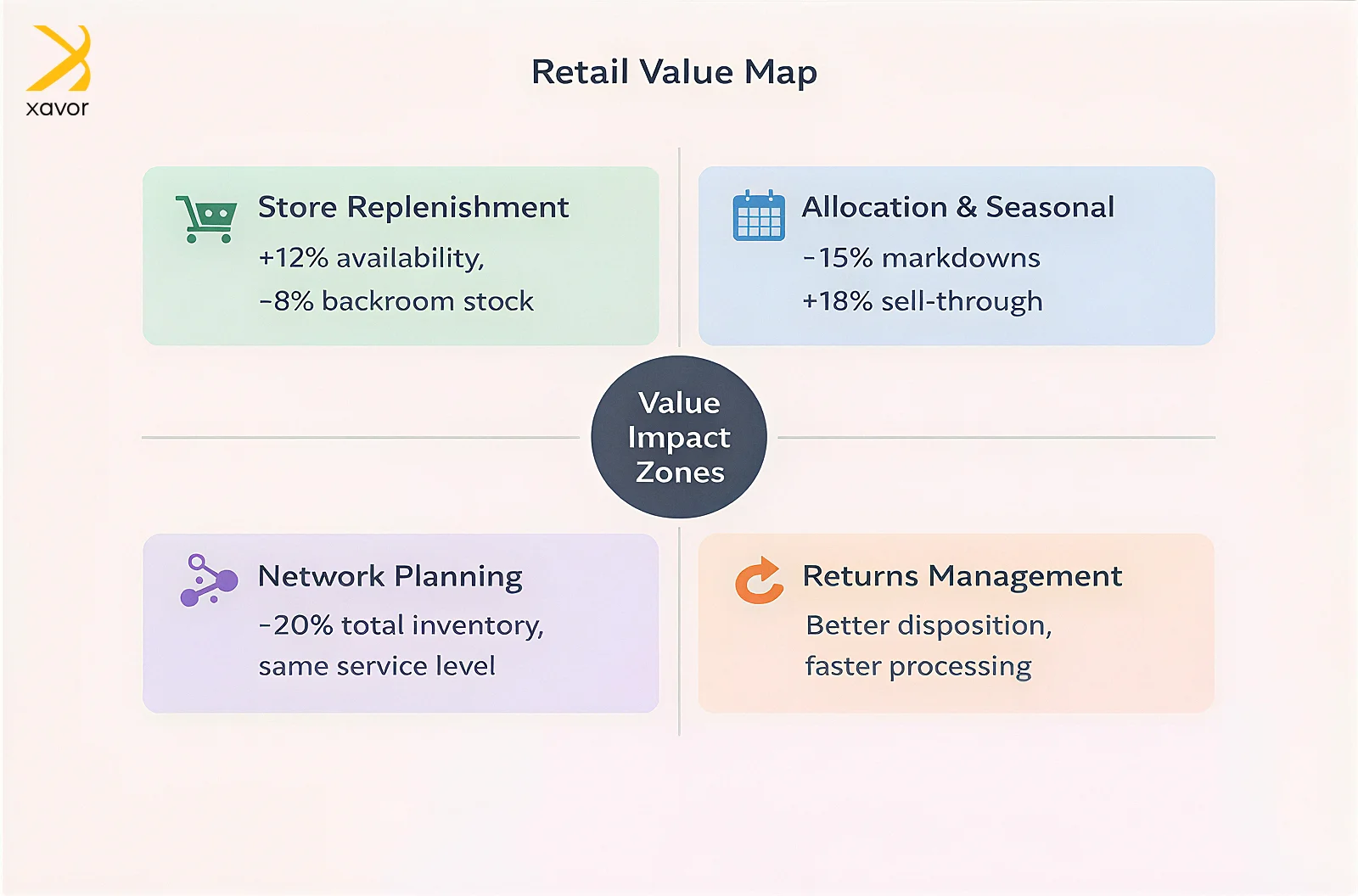 From building scalable data foundations to deploying inventory optimization software and decision tools, Xavor works closely with retail organizations to improve availability, reduce excess stock, and support long-term growth.