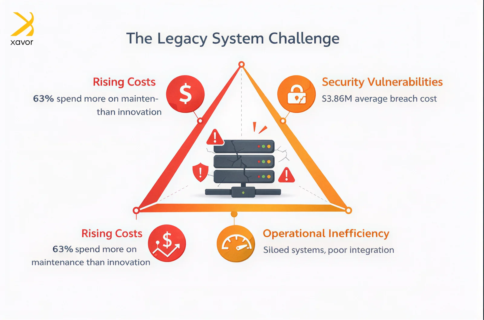 Legacy systems are like old vehicles, while they may still function; they are often inefficient, prone to breakdowns, and expensive to maintain. Businesses that continue to rely on these systems face several challenges:
