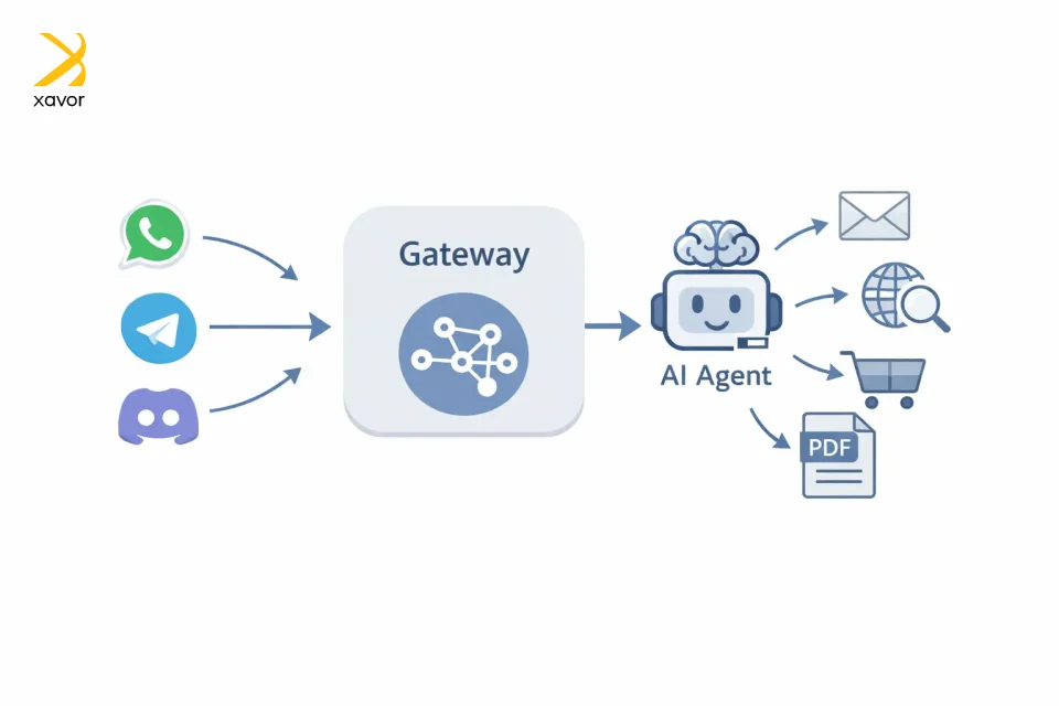 OpenClaw has a central hub called the Gateway that handles all the connections and keeps everything organized in one place.