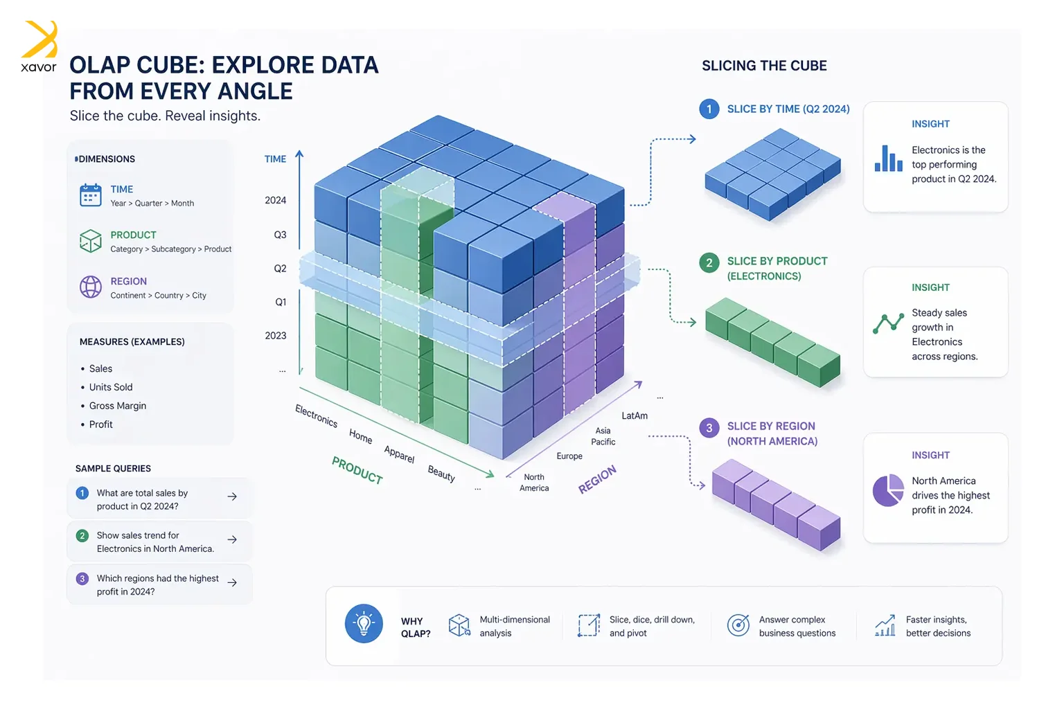 For example, a mid-sized industrial parts manufacturer with operations across three U.S. facilities came to Xavor to build a data warehouse. Their years of operational data were scattered across Salesforce CRM, a legacy ERP, a supplier portal, and three facility-level inventory systems.